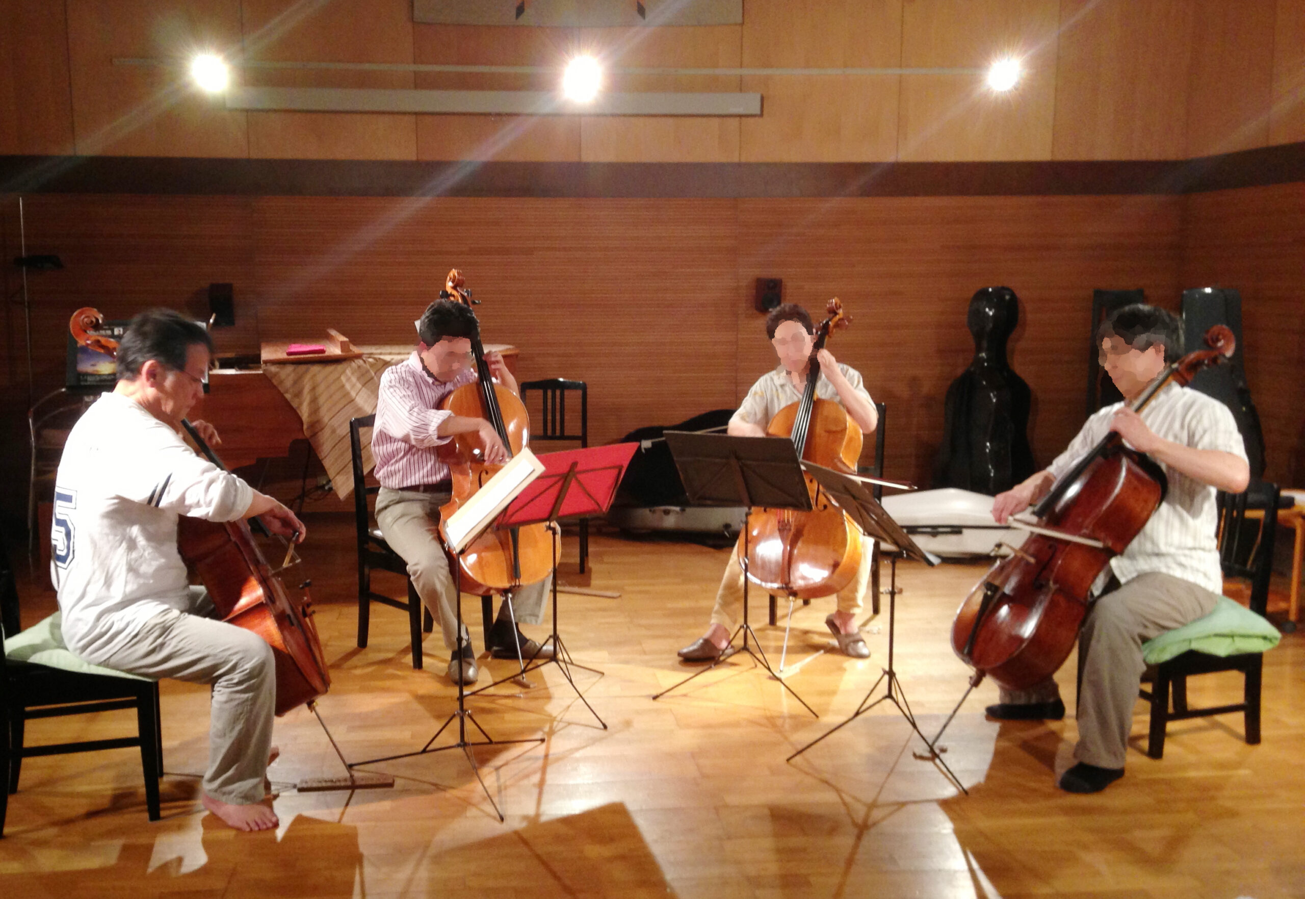 恒例の山中湖アンサンブル合宿が終わりました。今年は、講師にチェロの津留崎直紀さんをお迎えして、レッスンに、遊びに、と、とても充実した2日間になりました。生徒たちも満足してもらえたのではないかと思います。(写真は、津留崎さんと私以外は加工してあります)